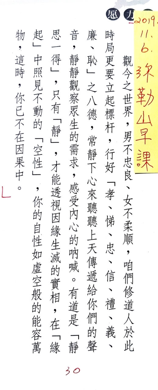 11/06 彌勒山早課2019年11月6日讀畢需時 1 分鐘 親愛的家人 11/06 彌勒山早課 13號本 「愿力與業力」業力章 作如是因,感如是果-4 第30頁。 https://www.youtube.com/watch?v=kZ-H36eX-SI